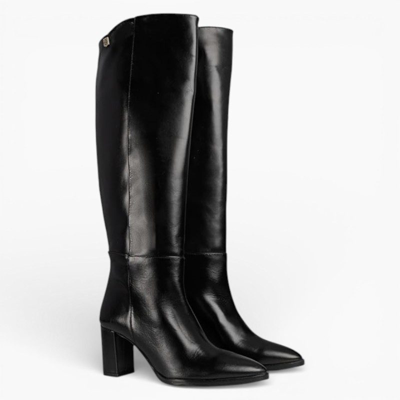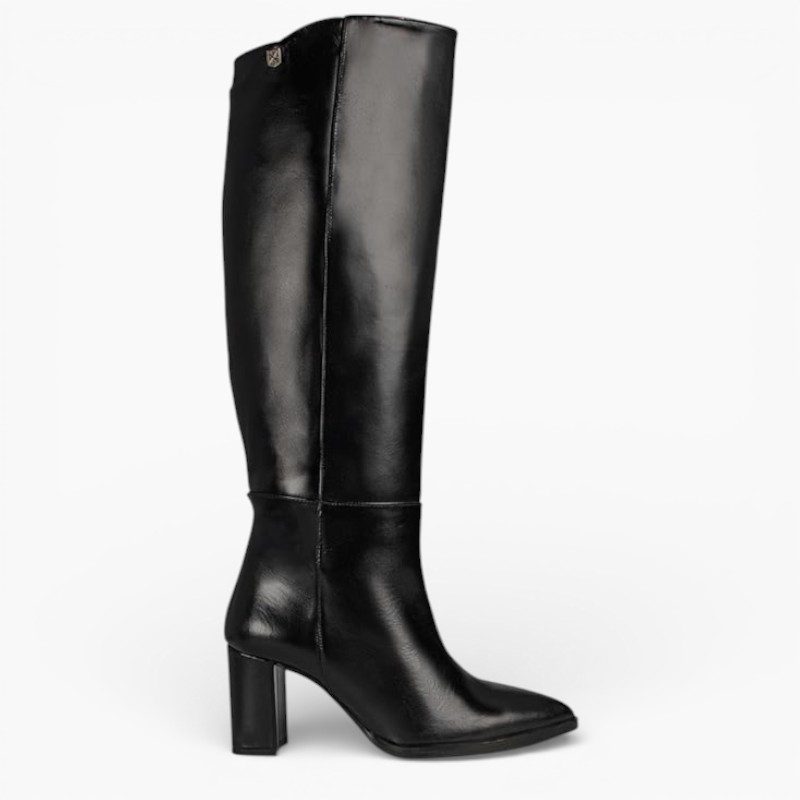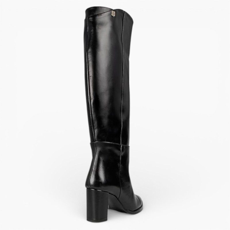 High-top boot made of black nappa leather.