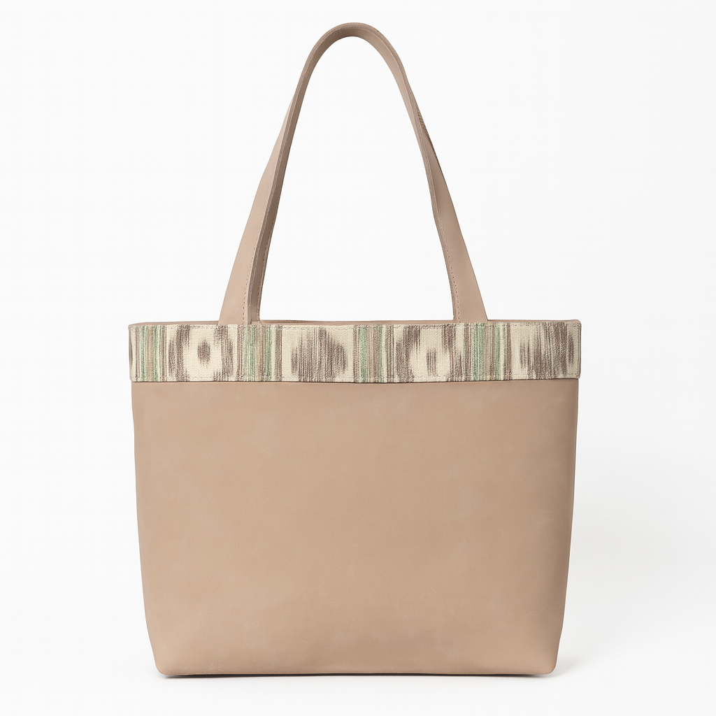 para pedidos superiores a 60,00€Limited edition leather handbag. Made with light gray nubuck leather and decorative ribbon in our original and authentic Mallorcan fabric. This is a limited edition due to the very limited stock of the leathers and fabrics.
