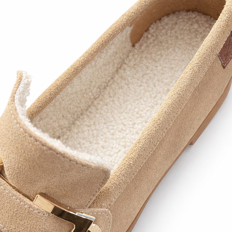 It has a decorative buckle and a very warm and comfortable shearling lining.